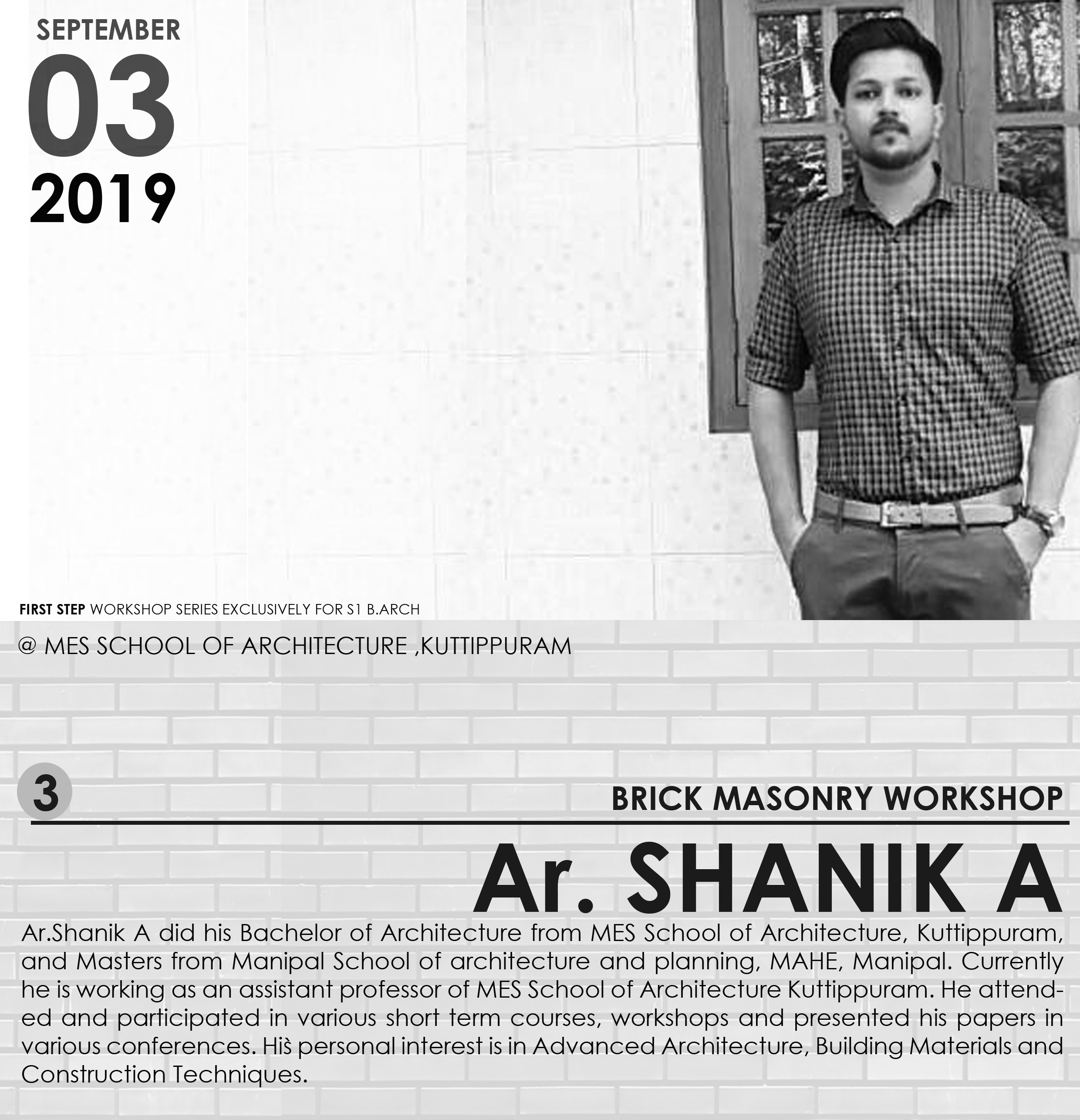 The Architecture course was started in the MES College of Engineering from the academic year 1999 - 2000 with an aim to meet the demand of architects globally. The department is known as MES School of Architecture. This is an institution approved by the Council of Architecture, Constituted under Architect's act 1972. It is also recognized by the AICTE and Government of Kerala. The course is affiliated to the APJ Abdul Kalam Technological University. The present intake for the B. Arch course is 40. The school has the state of the art facilities.