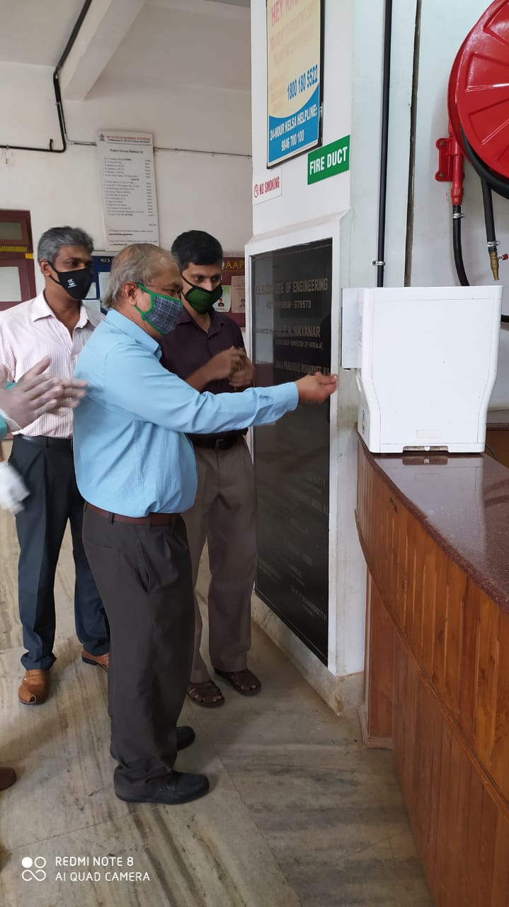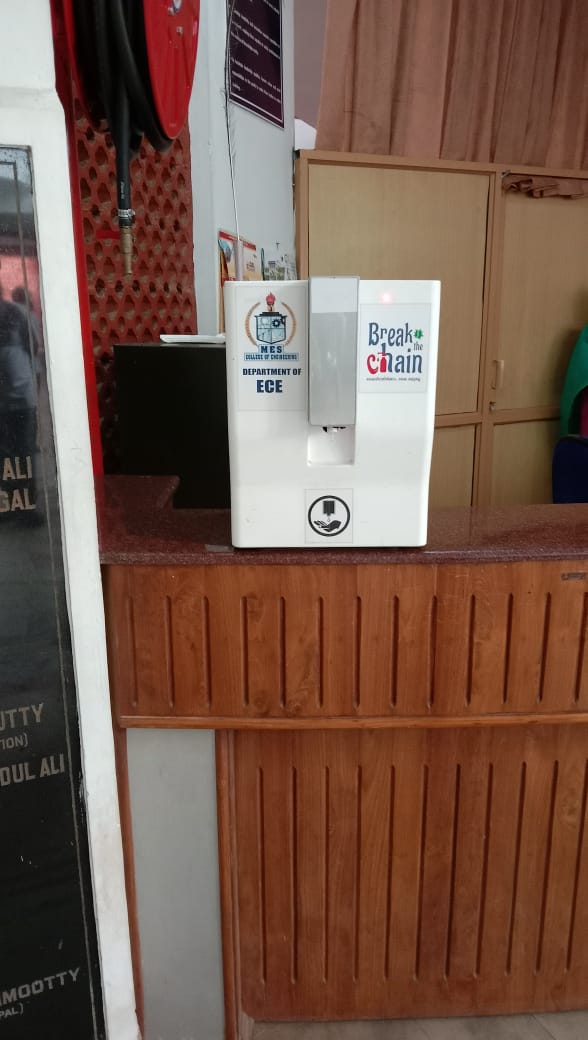 Principal Dr A S Varadarajan inaugurated the Automatic Hand Sanitizer developed by the Department of Electronics and Communication Engineering at the Main block