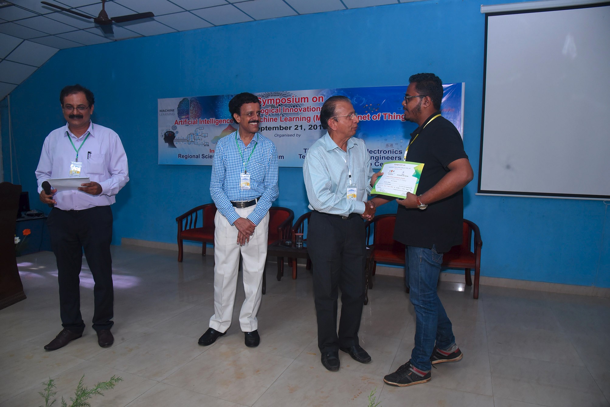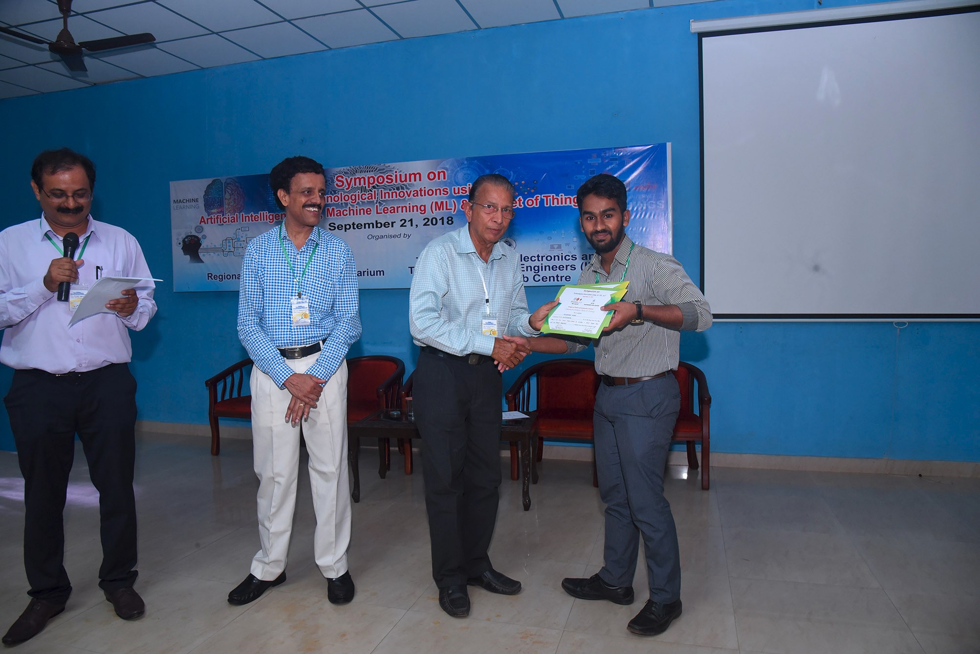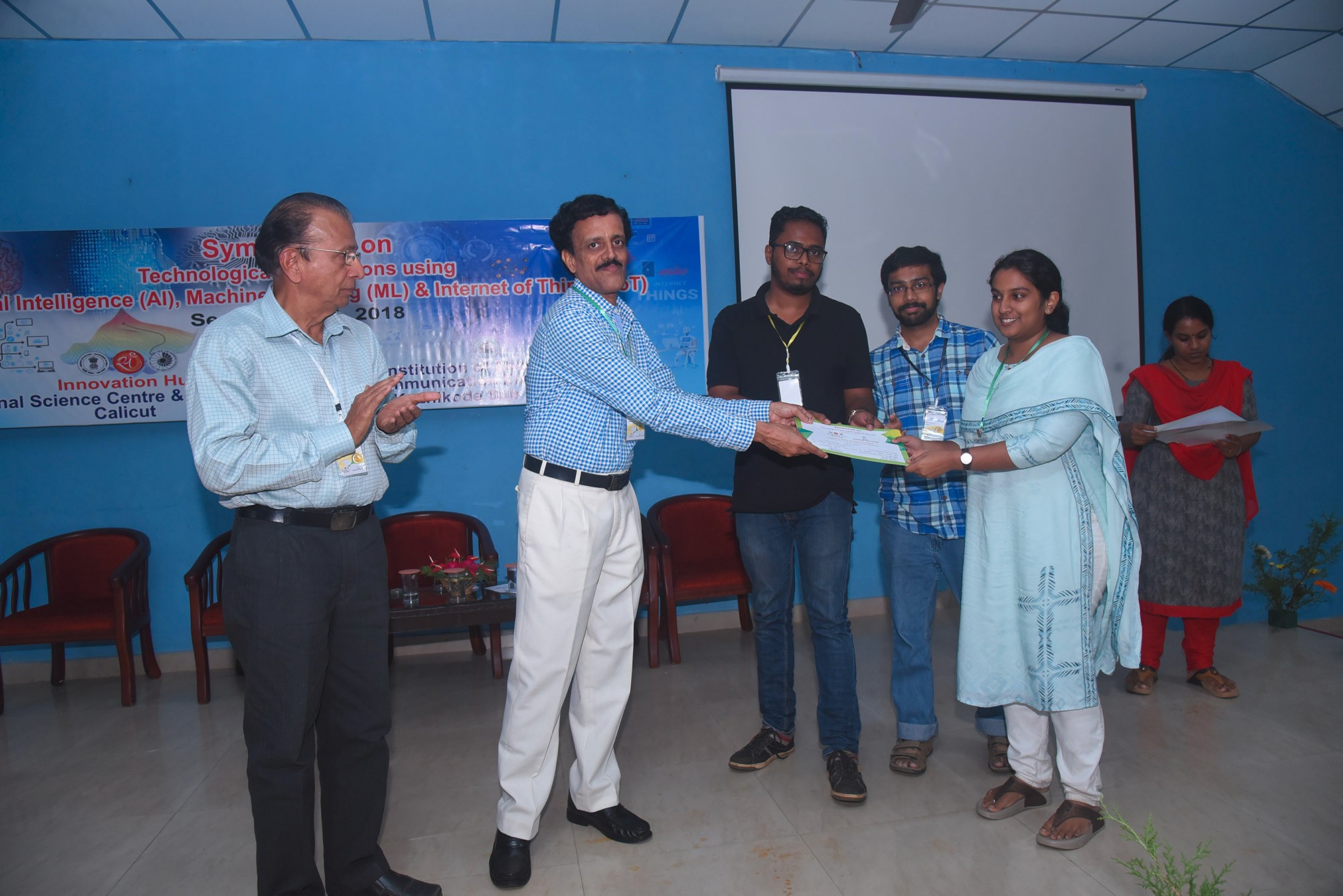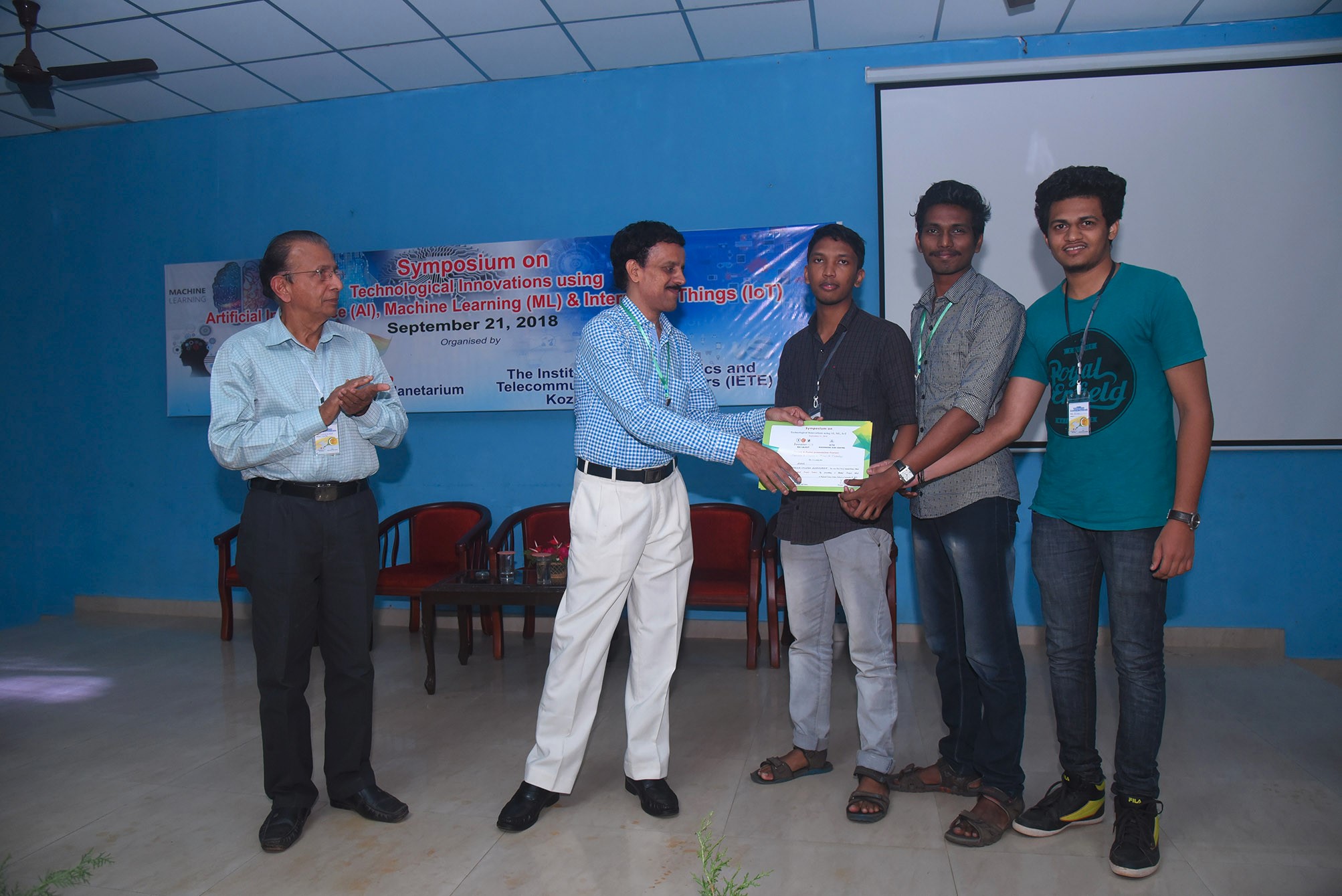 Students of Department of ECE has won 1st & 2nd prizes in Project and Poster Presentation competitions in the ‘One day Symposium on Technological Innovations using AI, ML & IoT’ jointly organised by Innovation Hub, Regional Science Centre & Planetarium, Calicut and The Institution of Electronics & Telecommunication Engineers (IETE) Kozhikode Sub Centre on 21st September 2018.