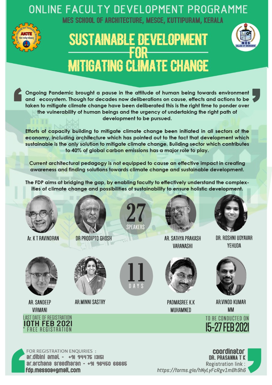 Prof. J. Sudhakumar , HOD , Dept of Civil Engineering NIT Calicut will inaugurate the symposium and Padmasree Ar. G Shankar will give a keynote address on Sustainable Constructions in India