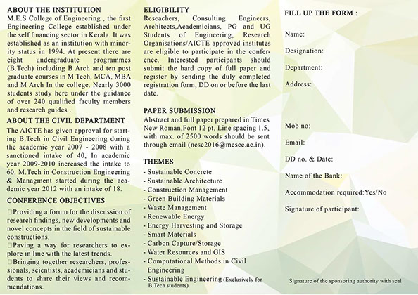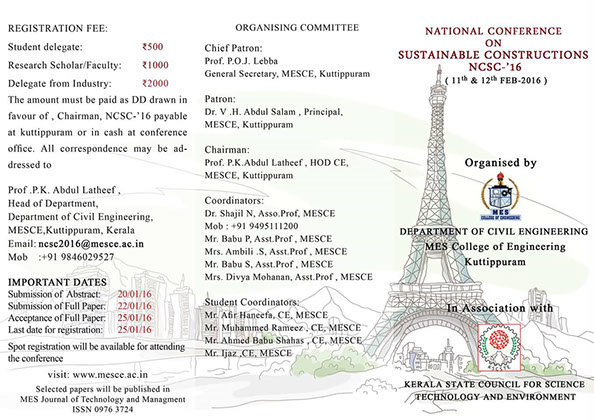 National Students Symposium on Sustainable Constructions on January 16-17, 2018 at MESCE Kuttippuram.